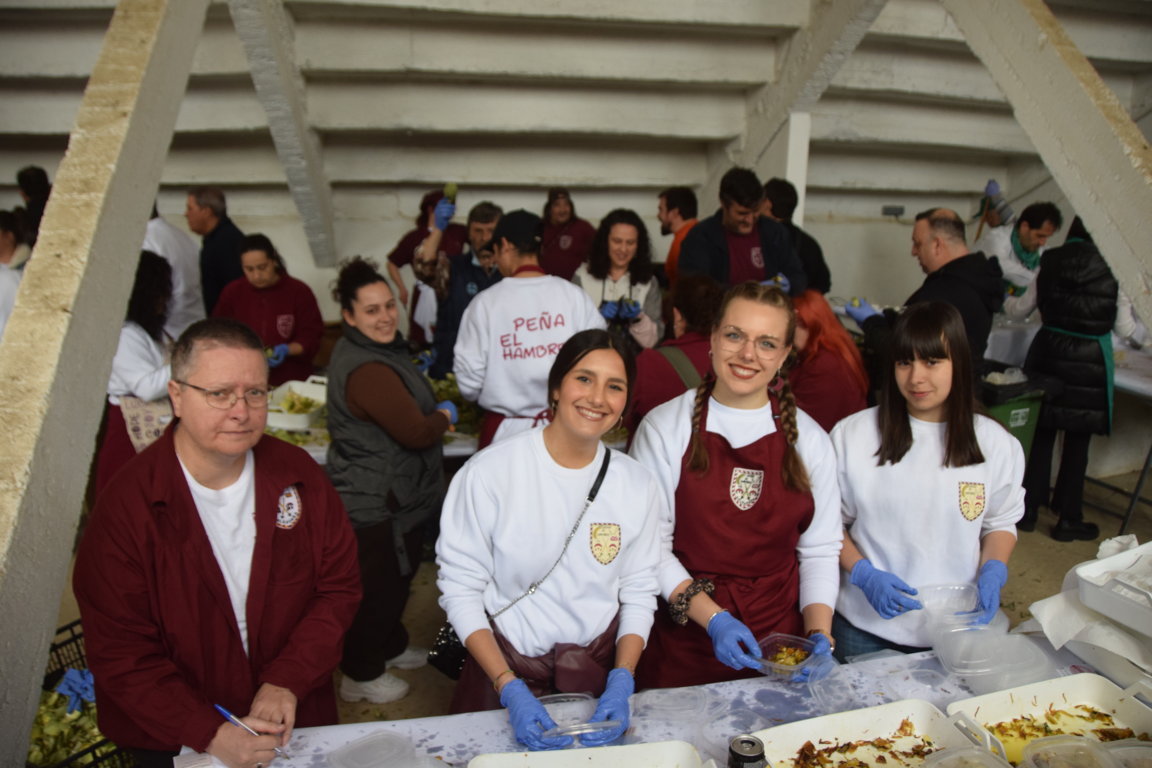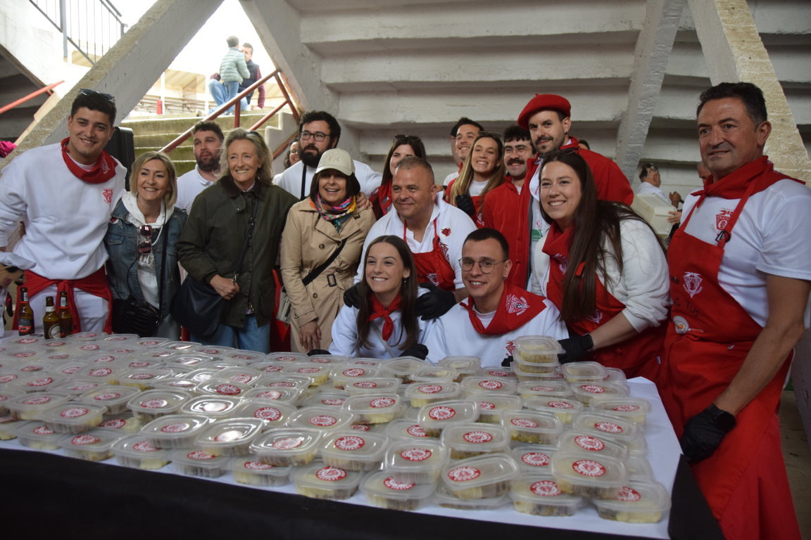 Las seis peñas de la ciudad han colaborado en esta actividad en la que se han repartido 450 raciones. Cada una de estas, estaba compuesta por seis platos elaborados por ellas.