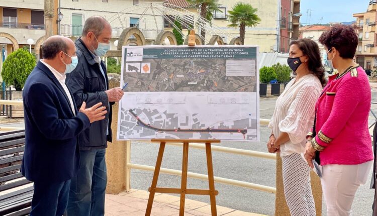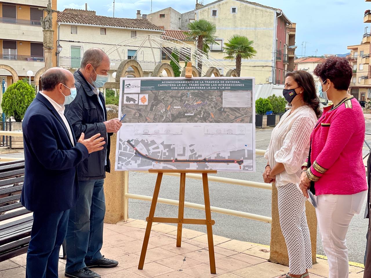 La presidenta ha visitado primero el municipio de Entrena donde ha recorrido la travesía de la LR-541 en la que el Ejecutivo regional invertirá 461.058 euros en su acondicionamiento y mejora.