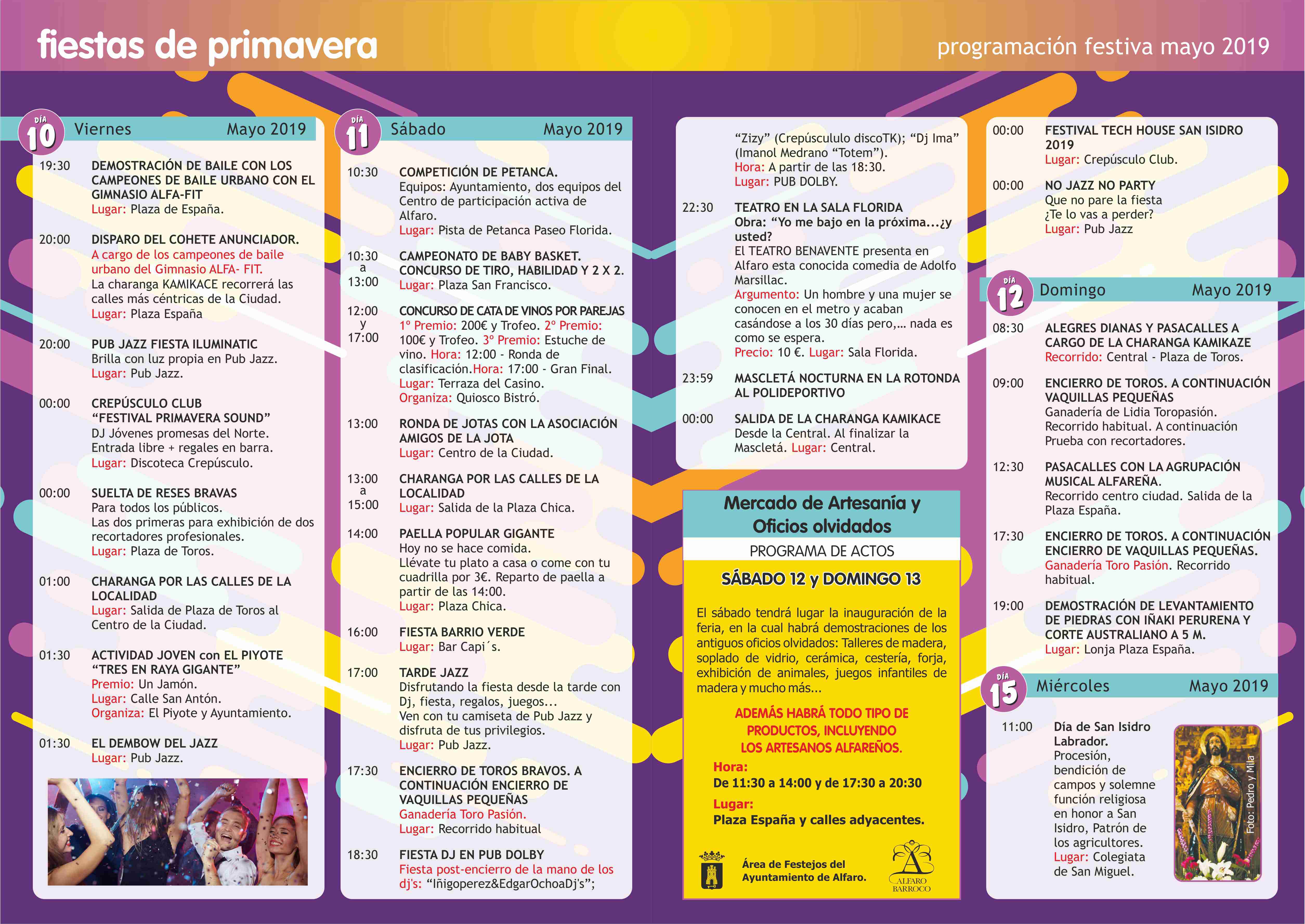 Además, el día 15 de mayo, Alfaro tampoco olvidará rendir a San Isidro honores en su onomástica con preocesión, bendición de campo y eucaristía.