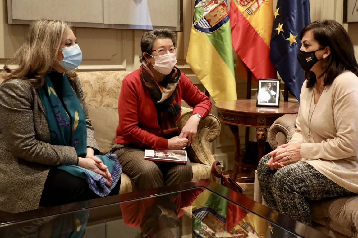 Concha Andreu ha recibido esta mañana en el Palacio de Gobierno a la escritora Laura Freixas, acompañada por la directora general de Igualdad, Emilia Fernández. En la reunión se ha abordado la importancia de visibilizar a las mujeres escritoras.