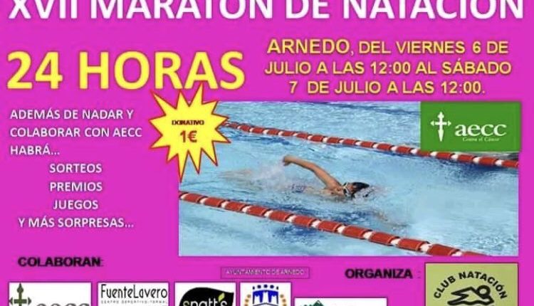 A las 12:00 de hoy, viernes 7 de julio, ha comenzado en Arnedo la XVII edición del maratón de natación, organizado por el Club de Natación de #Arnedo, en las Piscinas Municipales y que concluirá mañana a las 12:00. Todo aquel que quiera participar lo puede hacer con un donativo de 1 €, que irá a beneficio de la Asociación Española Contra el Cáncer.