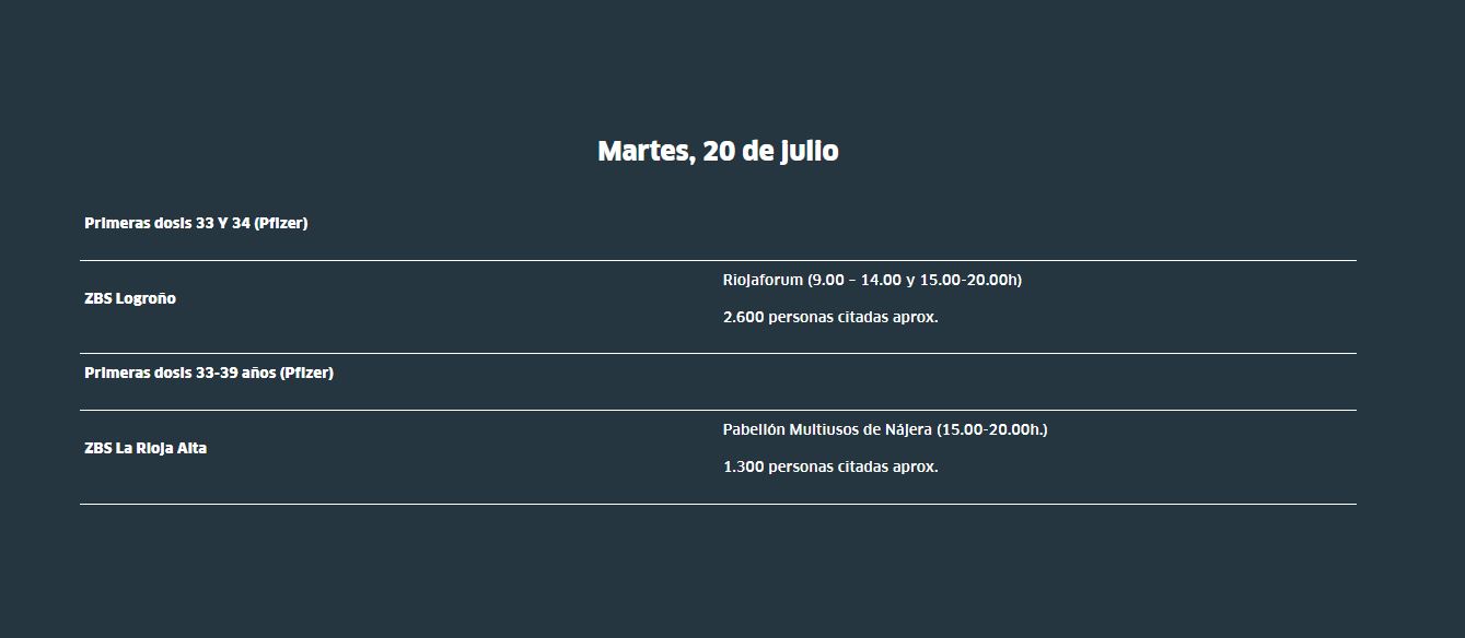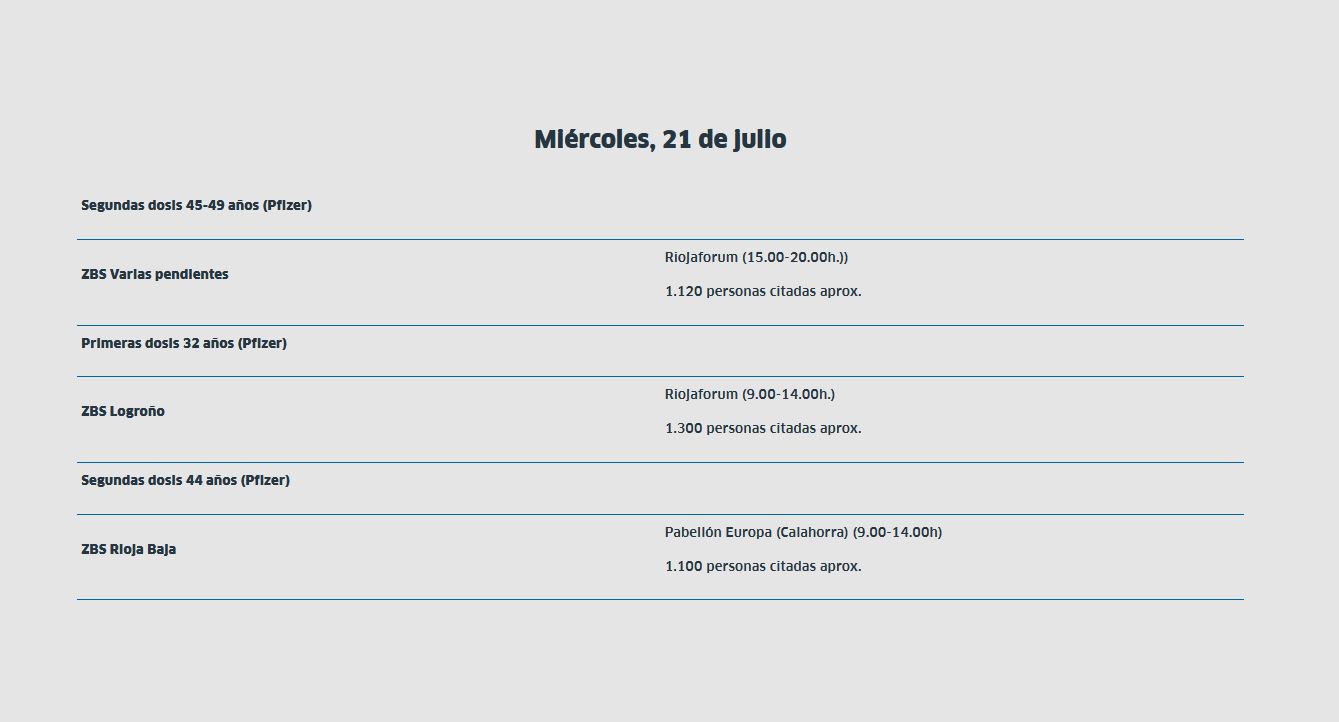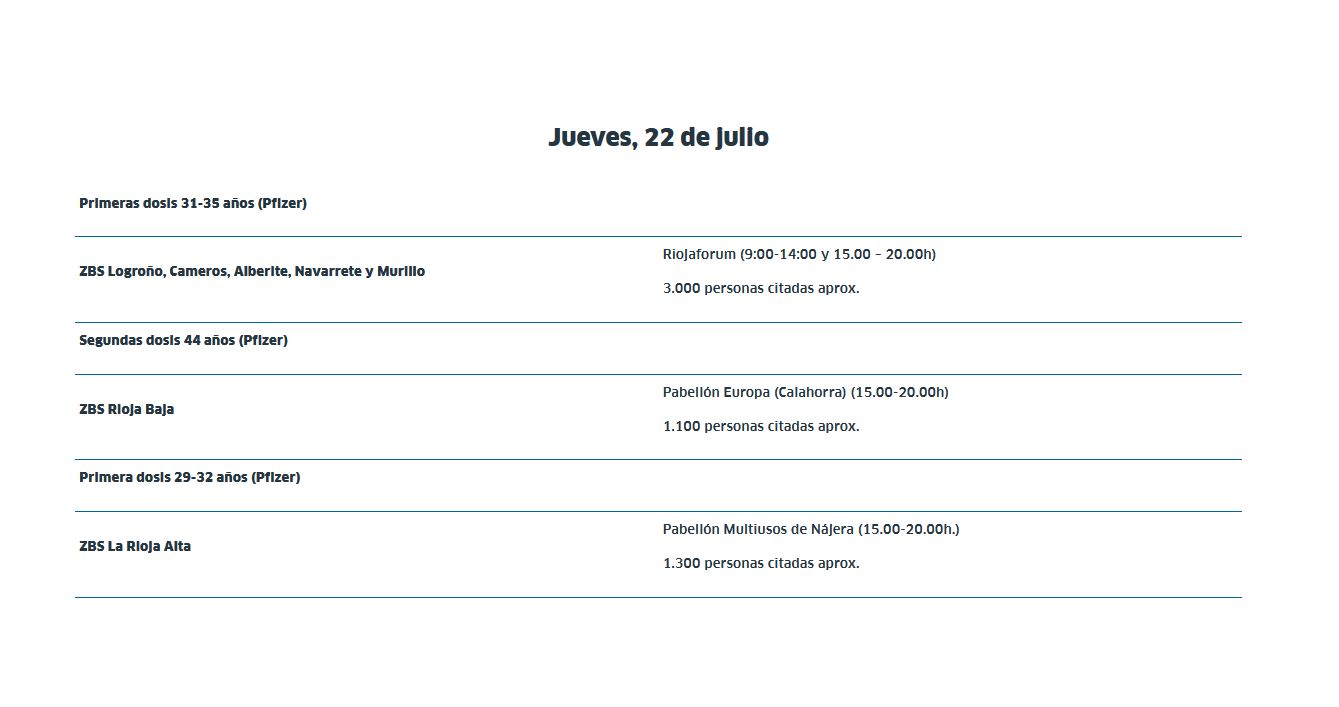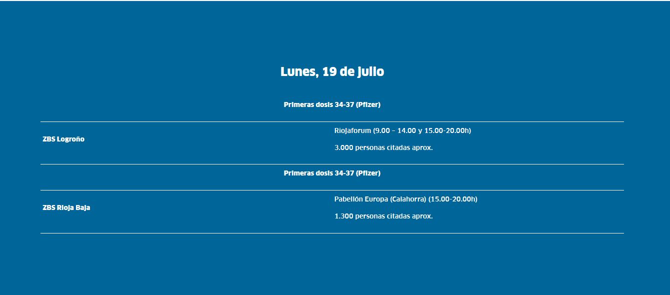 Así será la vacunación en La Rioja durante la semana 29 y que comprende las fechas desde el 19 al 26 de julio. En esta semana está previsto que se inyecten alredor de 26.000 dosis.