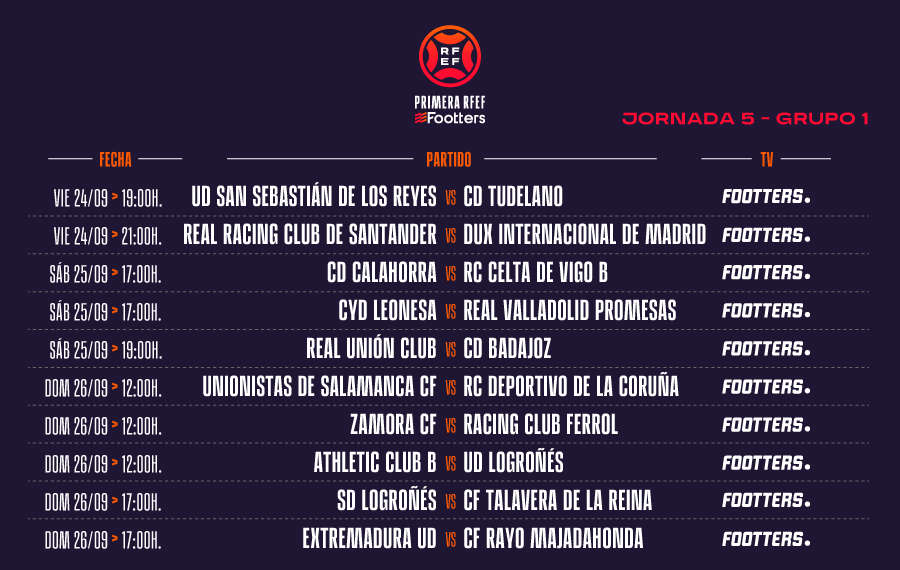 Esta misma tarde, la Real Federación Española de fútbol ha dado a conocer los señalamientos de las jornadas 5, 6, 7 y 8.