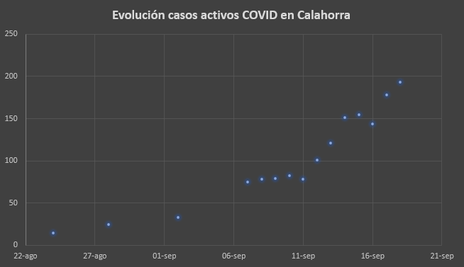 Los datos del Salud Pública sobre la situación del COVID en localidades de más de 1.000 habitantes siguen mostrando, otro día más, un ascenso de casos activos en Calahorra , hoy de 15. Con este nuevo incremento se observa como cerca de doscientas personas están pasando en este momento y en diferentes grados esta enfermedad y pueden trasmitirla.