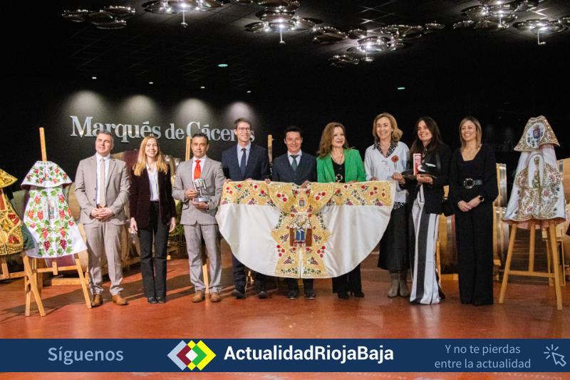 El trofeo del ‘Capote de Paseo’ consiste en un capote de paseo con alusiones a los símbolos representativos de nuestra tierra, con el bordado del escudo de la Comunidad Autónoma de La Rioja y la imagen de Nuestra Señora de Valvanera, rodeada por racimos de uva y filigranas de oro.