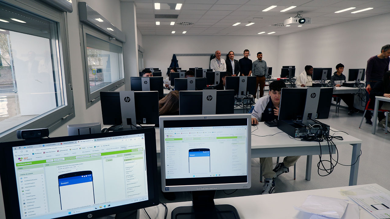 El taller “Surfeando en la Ingeniería Informática” permite a los estudiantes desarrollar su propio videojuego mediante la plataforma App Inventor. Al finalizar, pueden descargarlo en su móvil y probarlo.