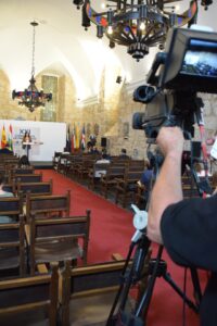 En la sala de la lengua española del Monasterio de Yuso ha comparecido, superadas las 16:50 de la tarde, la presidenta del Gobierno de La Rioja; Concha Andreu. La presidenta socialista, ha dado sus impresiones tras la conferencia, que ha durado desde las 10:00 de la mañana hasta el comienzo de la tarde. Andreu, ha estado en el foco de todas las miradas dado su papel de anfitriona. Tras calificar por la mañana como “momento histórico para La Rioja” la realización de la conferencia en tierras riojanas, la presidenta ha vuelto a reiterarse en su valoración del evento.