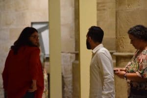 Durante unos eternos minutos se encerró en el despacho del grupo parlamentario de Podemos donde permaneció acompañada por algunos miembros de su formación, entre ellos Mario Herrera; mientras, Nazaret Martín y Amaia Castro se hallaban charlando fuera del parlamento.