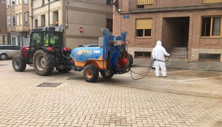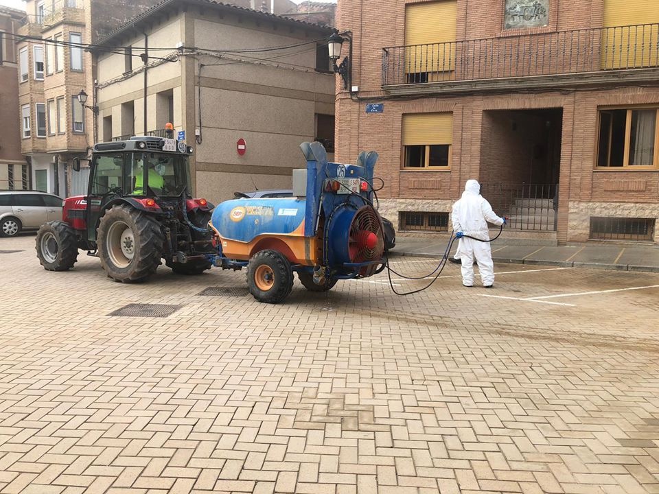 A primera hora de la mañana, Aldeanueva de Ebro ha realizado una desinfección de la localidad a través de un grupo de agricultores.