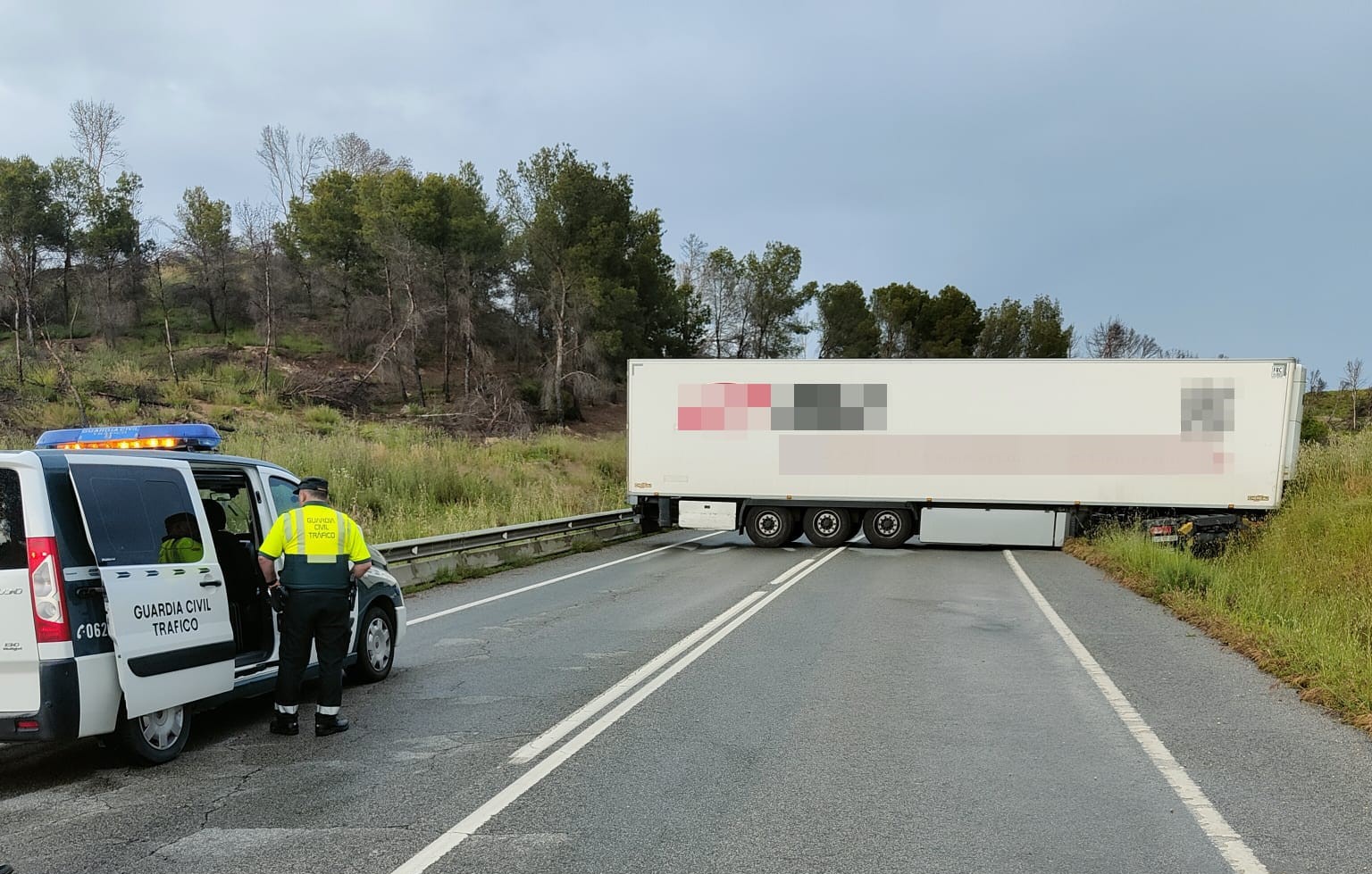 En estos momentos, una grúa trabaja en la retirada del camión con el objetivo de liberar la calzada lo antes posible. Los agentes de la Guardia Civil permanecen en la zona regulando el tráfico y han iniciado las diligencias correspondientes para esclarecer lo ocurrido.