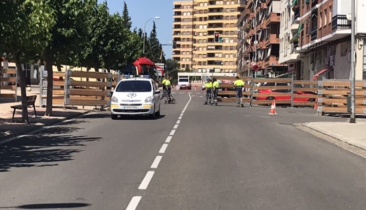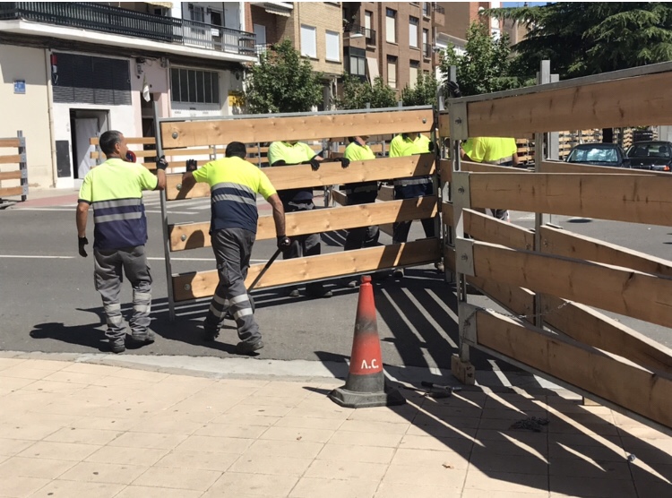 La calle Bebricio, entre General Iriarte y la Avenida Valvanera se encuentra cerrada en este momento a consecuencia de la colocación de los maderos de las fiestas de Calahorra.