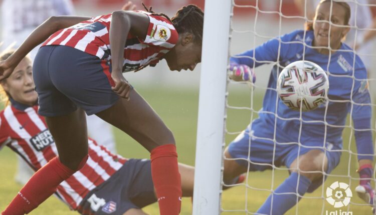 A falta de veinte minutos para el final, y con el Atlético de Madrid acechando, Rebeca Elloh, recién entrada al campo por el conjunto visitante, cabecearía fuera un centro de Olga García.
