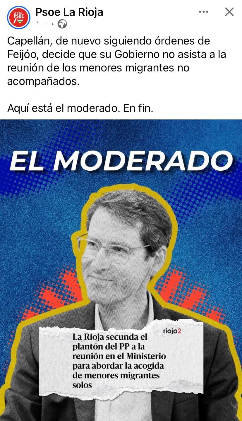 La semana pasada eran ya las redes oficiales del partido, quienes salían en tromba a atacar al Presidente de La Rioja. Y curisomente, lo hacían a cuenta de la acogida de menores migrantes.