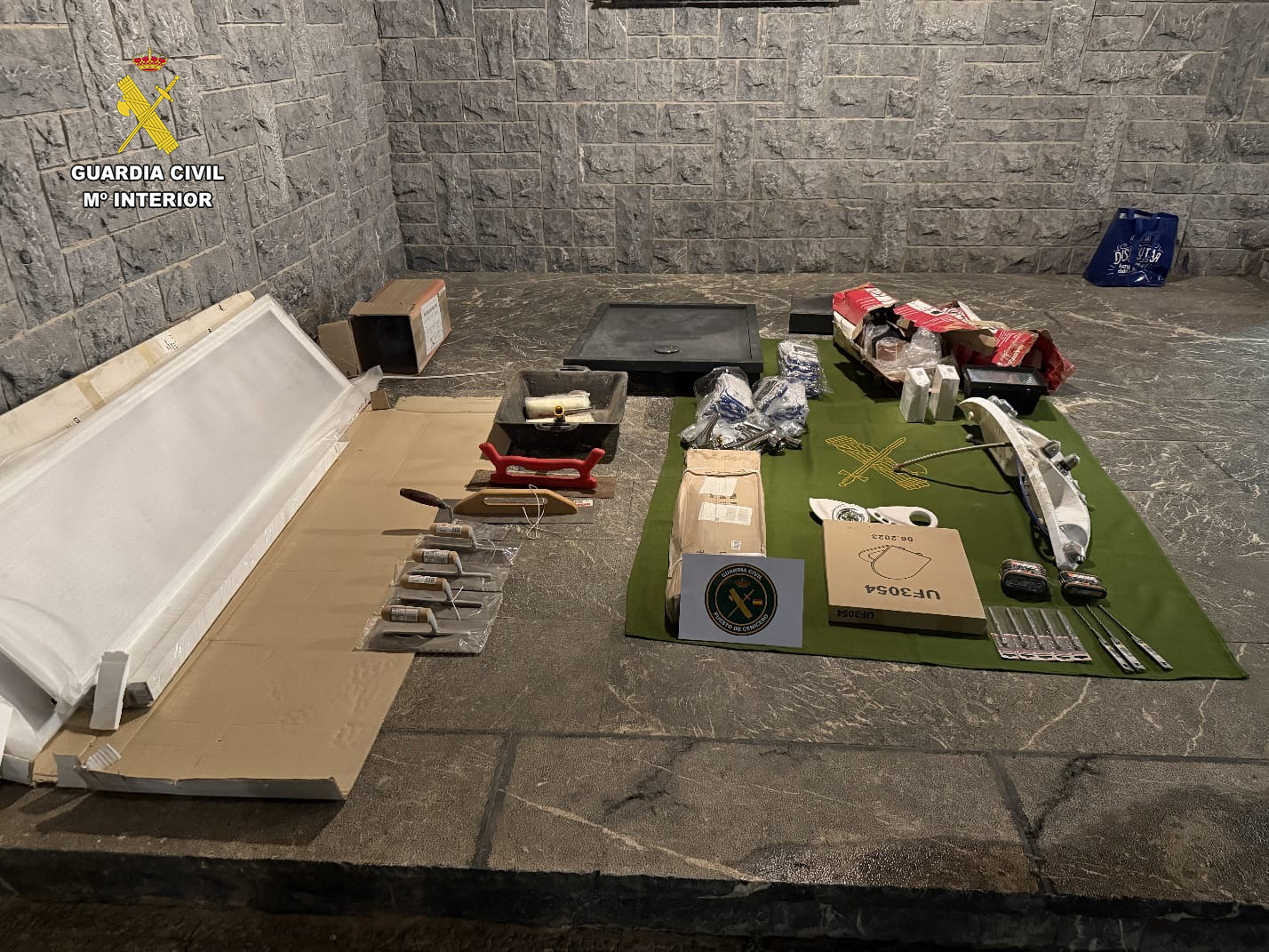 Entre el material recuperado figuran una torre de hidromasaje, un plato y una mampara de ducha, un mueble de baño, grifería, herramientas eléctricas, material de albañilería y un cajón de caja registradora. Todos los efectos han sido devueltos a sus legítimos propietarios.