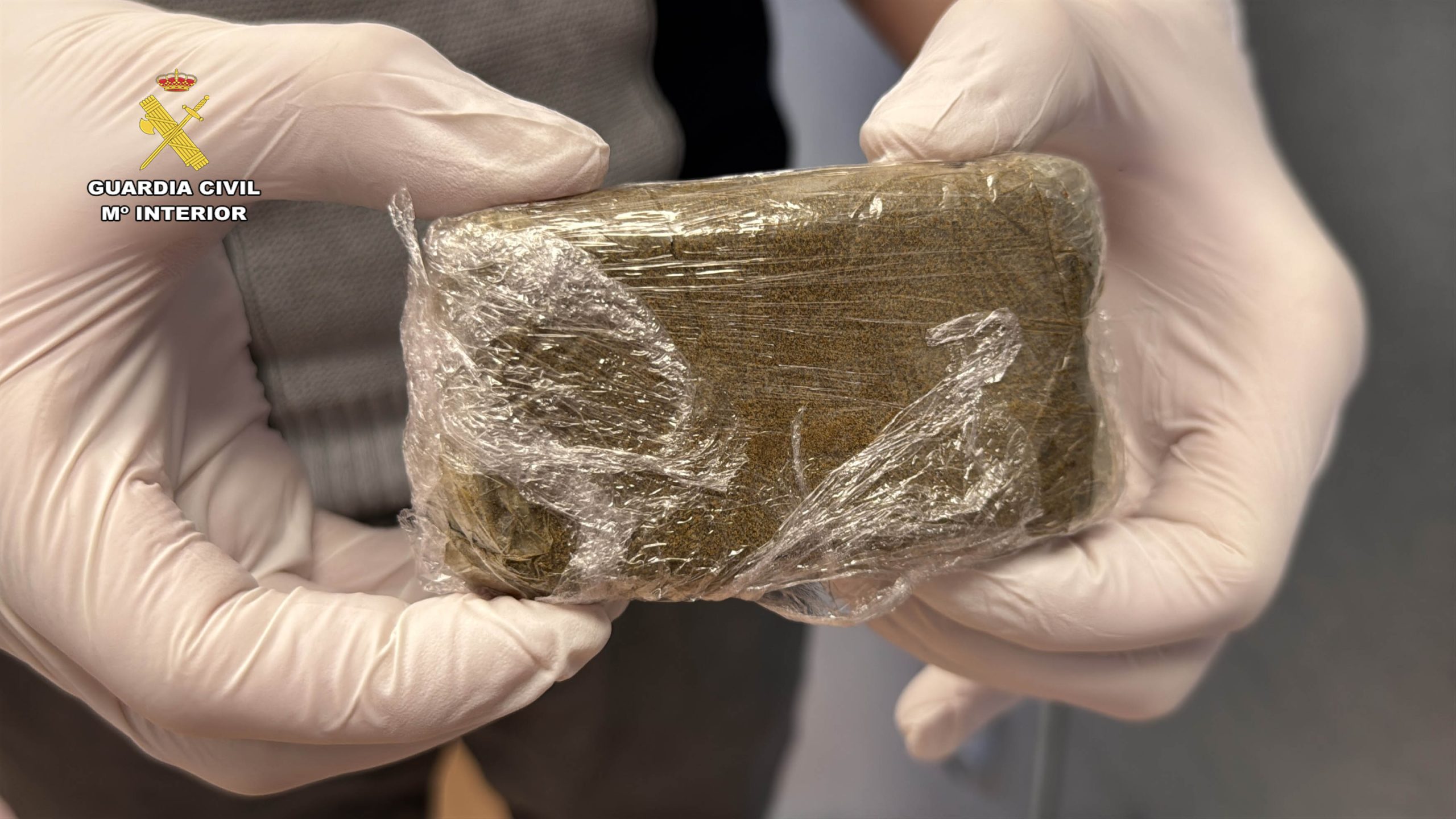 Durante la inspección, se detectó un fuerte olor a droga procedente de la parte inferior del asiento del copiloto, donde se halló una tableta de hachís de casi 100 gramos, envuelta y lista para su ocultación.