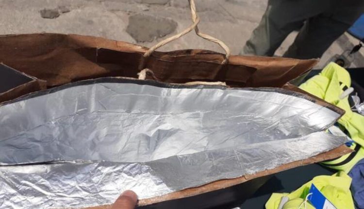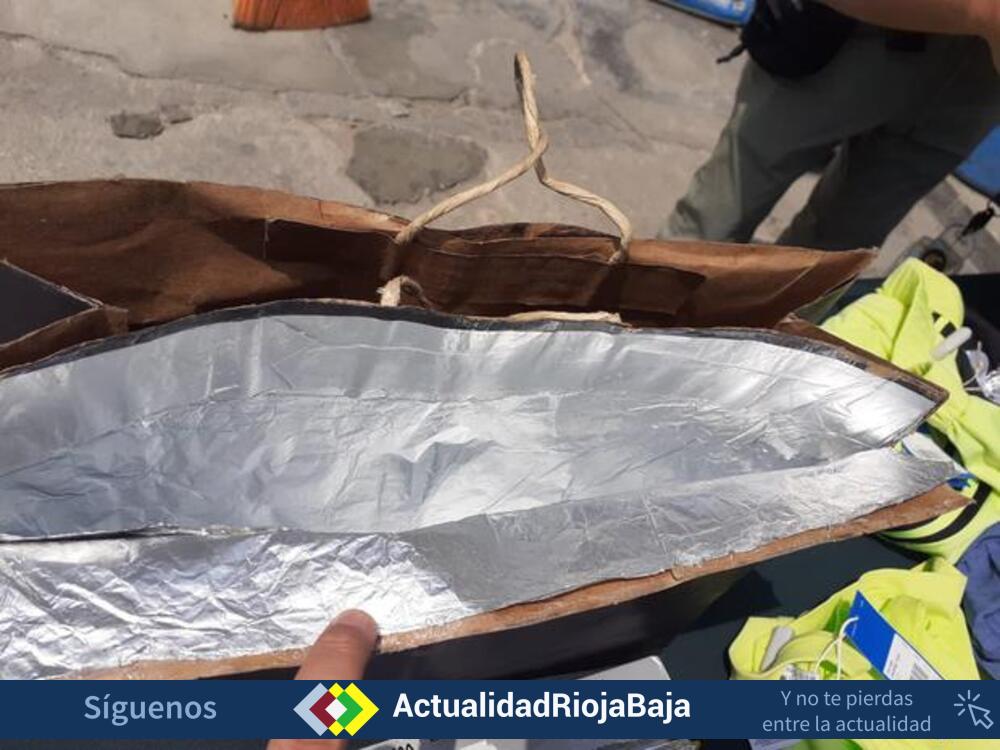 La maleta elaborada manualmente esta forrada por varias capas de precinto y una capa interior de aluminio, supuestamente utilizada para eludir los sistemas antirrobo de los establecimientos.