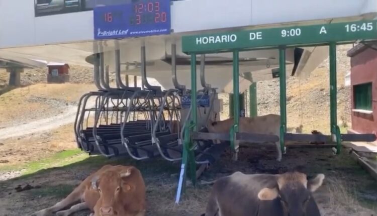 La denuncia se acompaña de un curioso vídeo en el que se aprecia como las que sí han «reservado» plaza a la sombra de sus telesillas son las tres vacas que aparecen en él.