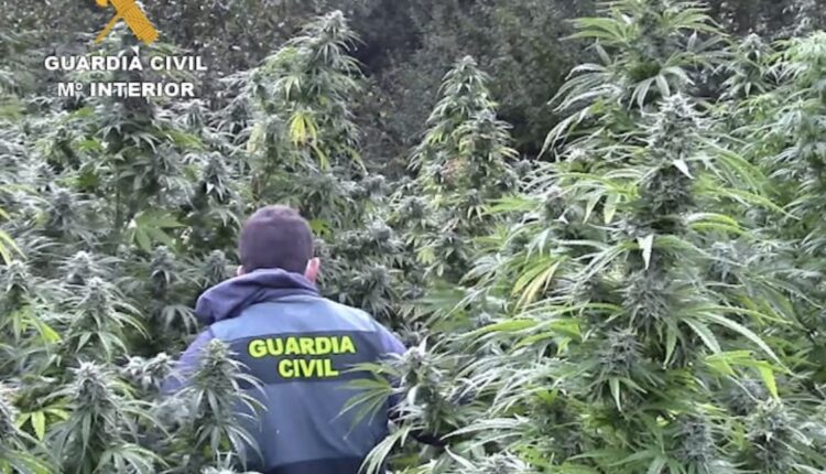 En el lugar, perfectamente integrado y camuflado con el entorno, se hallaron 415 plantas enraizadas directamente al suelo de gran frondosidad y envergadura, con evidencias de encontrarse tuteladas; la mayoría superaban los 2 metros de altura y algunos ejemplares los 3’5 metros.