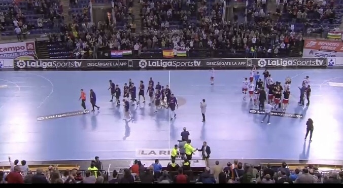 Recortó diferencias el Barça Lassa. Todo había sido un espejismo ¡O NO! El equipo logroñés volvió a ponerse las pilas, estiró el partido y llegó a vestuarios con cinco arriba. 17-12. Locura en el Palacio.