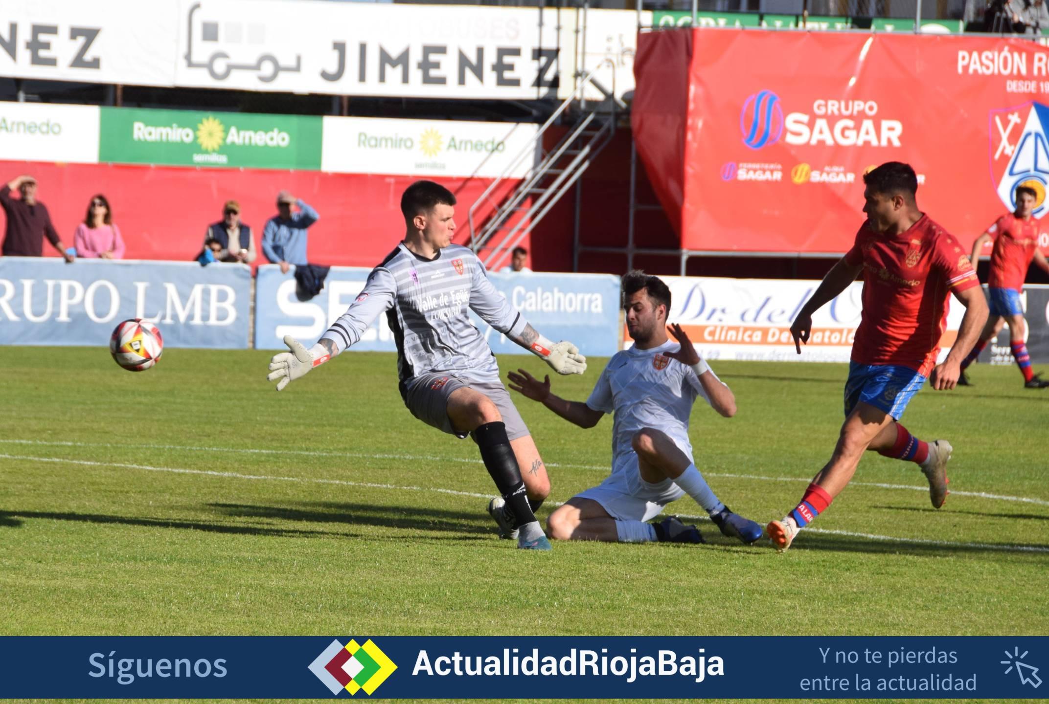 La segunda parte no mostró mucho más. El CD Calahorra, un equipo mejor plantado y con mayor consistencia en su plantilla, logró desde las botas de Raúl Rubio el 3-0 en el minuto 83.