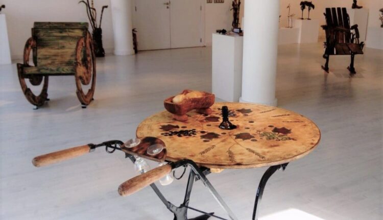 Actualmente además de tallar madera, también realiza obras de arte con materiales reciclados, por lo que, en esta exposición, vamos a poder disfrutar de objetos tallados en madera de árboles de la zona, como bastones, cucharas, percheros, mesas, botelleros y también de esculturas realizadas con materiales diversos de objetos en desuso.