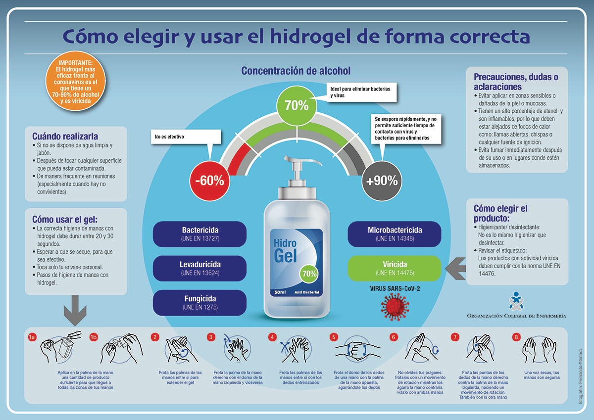 El gel hidroalcohólico se ha convertido, junto con la mascarilla, en un indispensable en nuestro día a día. Pero no todos los que se están vendiendo en el mercado protegen frente a la COVID-19. Por ello, el Colegio de Enfermería de La Rioja lanza una infografía de la Organización Colegial de Enfermería, informando de cuáles funcionan y cuáles no.