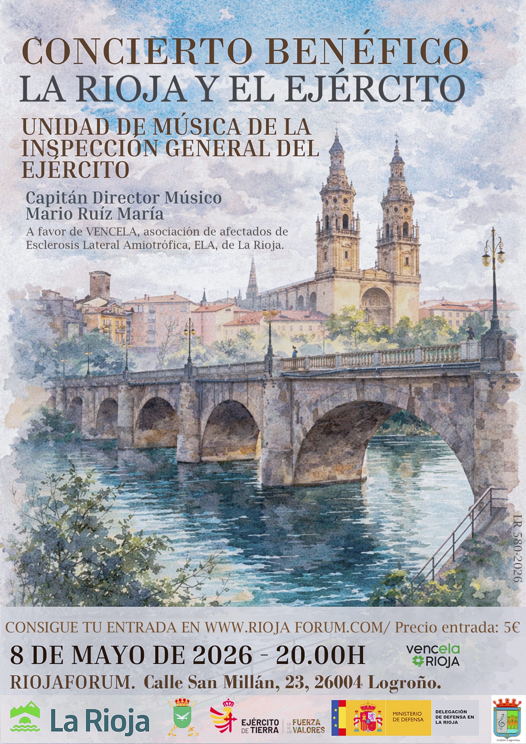 El concierto benéfico ‘La Rioja y el Ejército’ celebrará su segunda edición el próximo 8 de mayo, a las 20 horas, en Riojaforum, con un objetivo solidario: recaudar fondos para la asociación VencELA. Las entradas ya están disponibles por 5 euros en la web del auditorio.