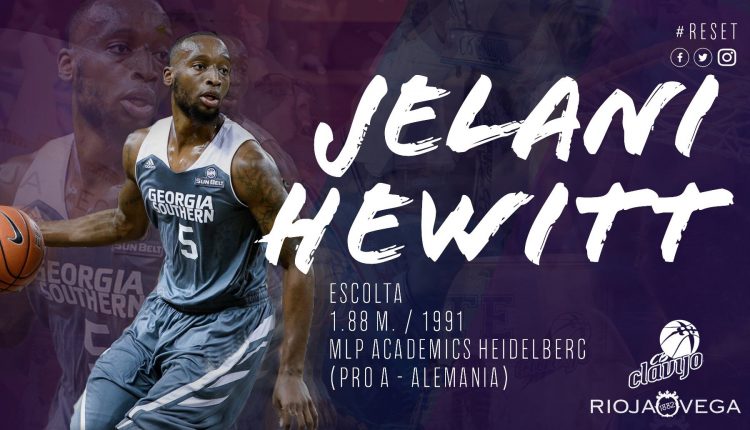Jelani Hewitt (Hollywood, Florida, 1991, 1,88 metros) se incorpora a la disciplina del Bodegas Rioja Vega. Hewitt es un escolta de gran presencia física y talento anotador, tanto en transiciones como con el lanzamiento exterior, algo que suma a una buena ética también para la actividad defensiva. Completó una fructífera trayectoria en la NCAA 1 con la Universidad de Georgia Southern, a la que lideró en su último año con una media de 17,6 puntos por partido, a los que sumó 4,2 rebotes y 3,7 asistencias. Su salto al profesionalismo se produjo en 2015 y con destino a la Liga Pro A de Alemania, con paso por Science City Jena, Rhein Stars Koeln y MLP Academics Heideberg, donde ha exhibido siempre medias anotadoras en torno a los 10 puntos por noche. La pasada temporada la pasó casi en blanco a causa de una lesión de rodilla que le ha mantenido inactivo desde entonces, y de la que ya se encuentra plenamente recuperado.