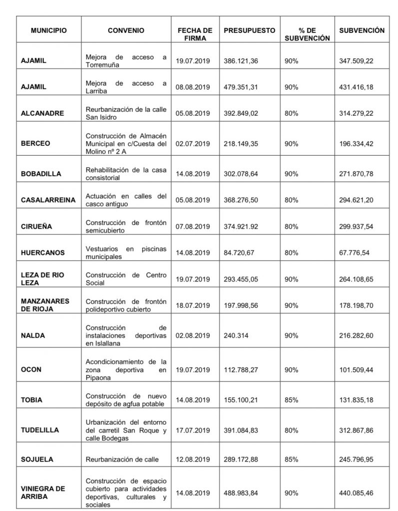 El Gobierno de La Rioja ha iniciado un procedimiento de declaración de lesividad contra los convenios de colaboración firmadas por el gobierno de Ceniceros cuando éste ya se encontraba en funciones. Estos 16 convenios, por un valor global de 4’1 millones de euros, fueron subscritos con 15 municipios enre el 2 de julio y el 14 de agosto.