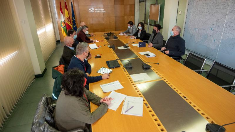 El consejero de Sostenibilidad y Transición Ecológica, Álex Dorado Nájera, y el director general de Transición Energética y Cambio Climático, Iván Moya, se han reunido este lunes con la Federación de Empresas de La Rioja y con sindicatos para tratar el proyecto de ley de creación de la Agencia Riojana de Transición Energética (ARTE).