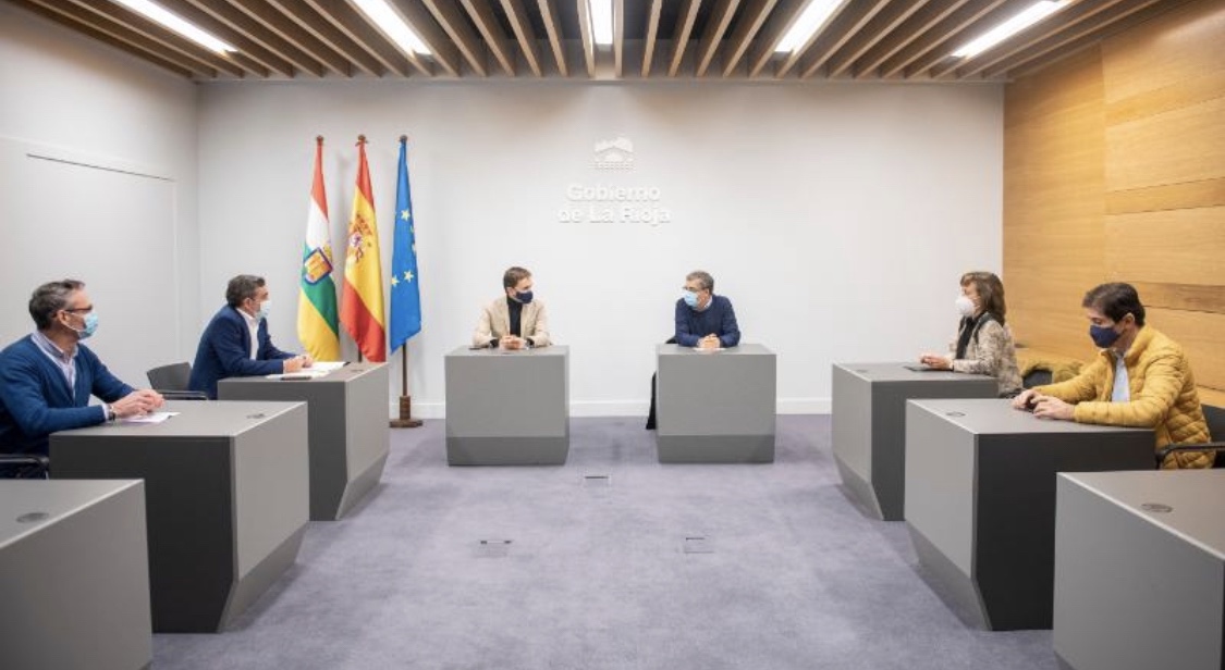 El consejero de Servicios Sociales y Gobernanza Pública, Pablo Rubio, y el director general de Política Local, Ricardo Velasco se han reunido este viernes con el presidente de la Federación Riojana de Municipios (FRM), Daniel Osés, para detallar los presupuestos generales de La Rioja para 2021. A este encuentro también han acudido el vicepresidente primero, Carlos Paúl Laprediza, el vicepresidente segundo, Francisco Javier Ibáñez Rodríguez y la secretaria general, Rosana Zorzano.
