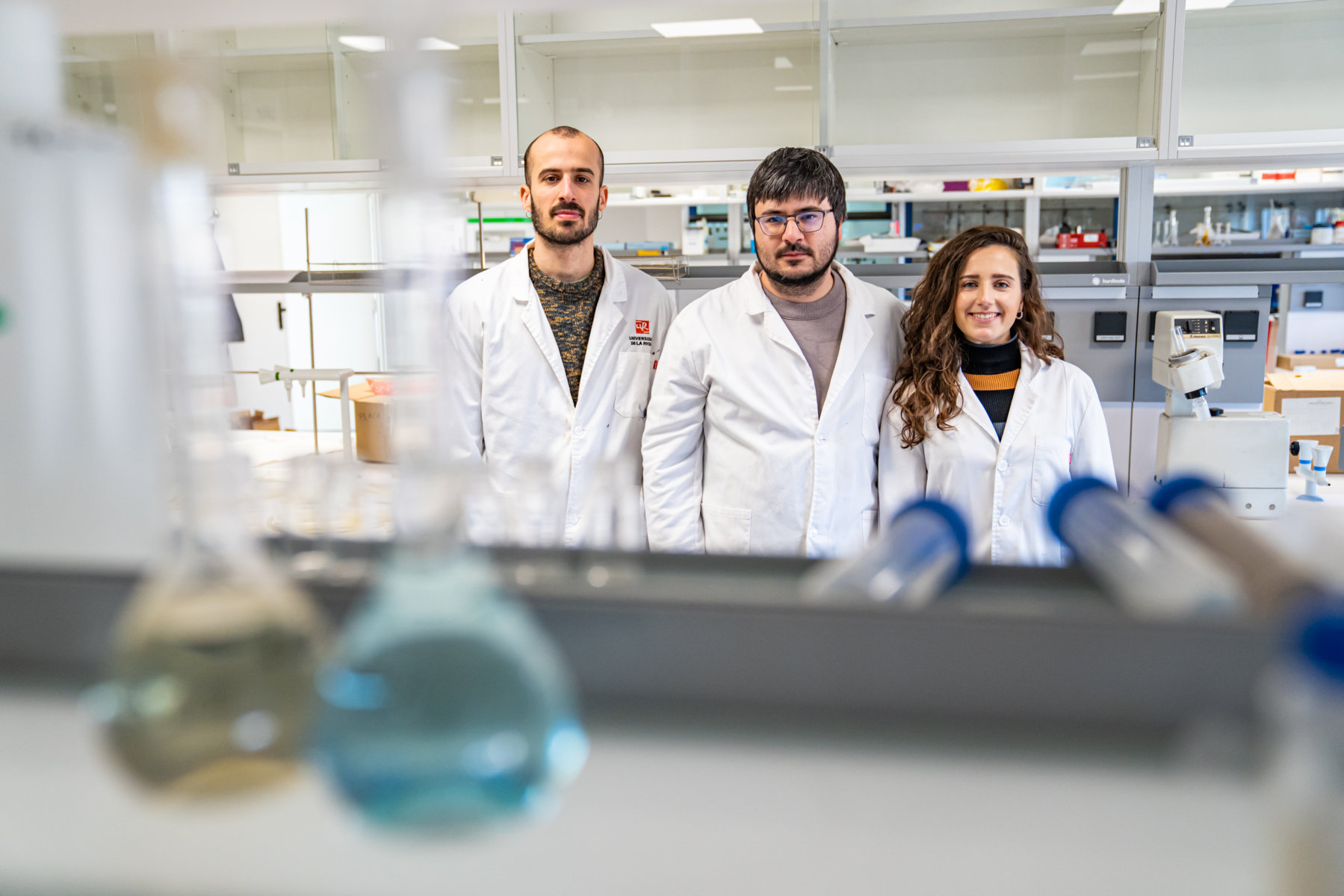 El Grupo de Fotoquímica de la Universidad de La Rioja (GRUFOR) ha publicado en las revistas científicas Nature Communications y Angewandte sendos artículos sobre mecanismos de síntesis útiles para el desarrollo de medicamentos más seguros y eficaces. Figuran como coautores de estos estudios el investigador ‘Juan de la Cierva’ Ignacio Funes y los estudiantes de doctorado Beatriz Piñon y Nil Sanosa.