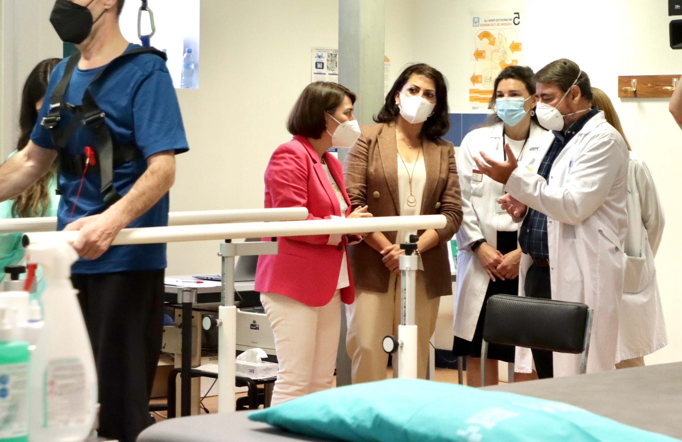 Esta mañana las instalaciones del nuevo sistema de rehabilitación han sido visitadas por la presidenta del Gobierno, Concha Andreu, acompañada por la consejera de Salud y portavoz, Sara Alba.