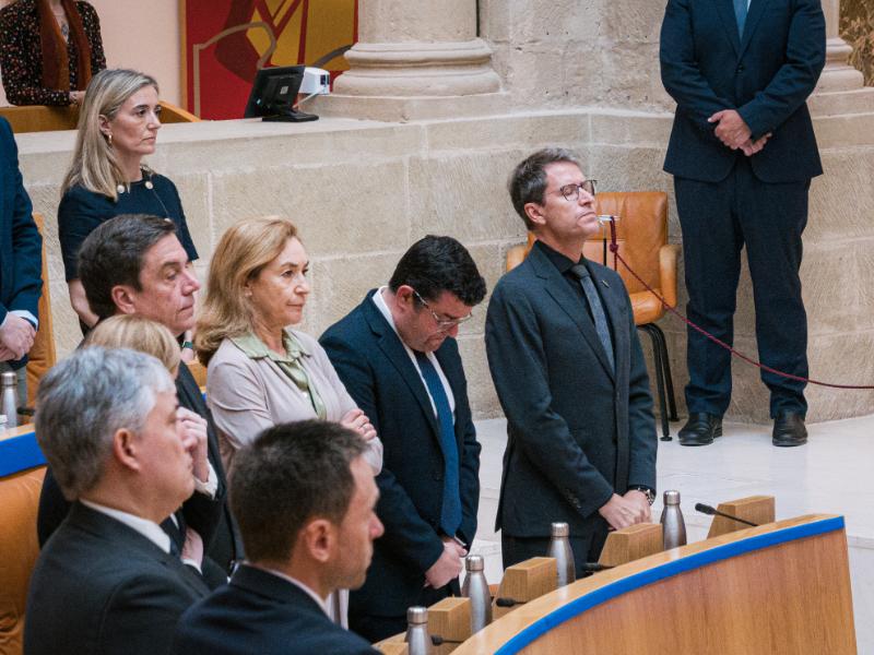 Marta Fernández Cornado, visiblemente emocionada, ha invitado a comenzar el pleno con un minuto de silencio de extraordinario recogimiento entre corbatas, pañuelos, americanas e incluso camisas, como la del presidente Capellán, negras en muestra de luto por este trágico suceso.