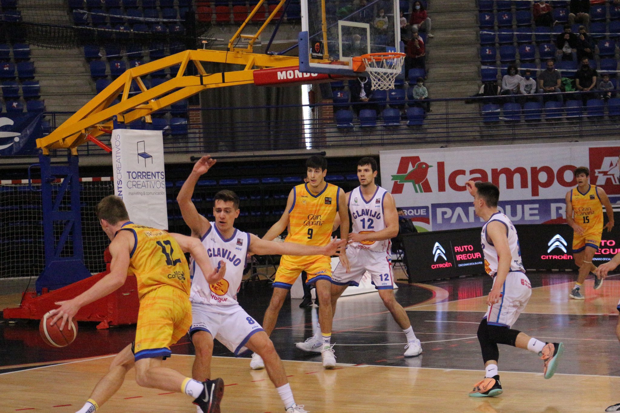 De arranque las sensaciones eran completamente diferentes a lo visto hace una semana en Canarias para el cuadro riojano y permitían al público local emocionarse con una posible remontada final. Presión alta a toda pista, forzando pérdidas del rival y viendo aro con suma facilidad. De todo ello llegaría el 18-8 que ya ponía la gesta a tan solo ocho puntos con 2:37 para el final del primer cuarto. Además, los dos interiores canarios ya contaban dos faltas en su haber.