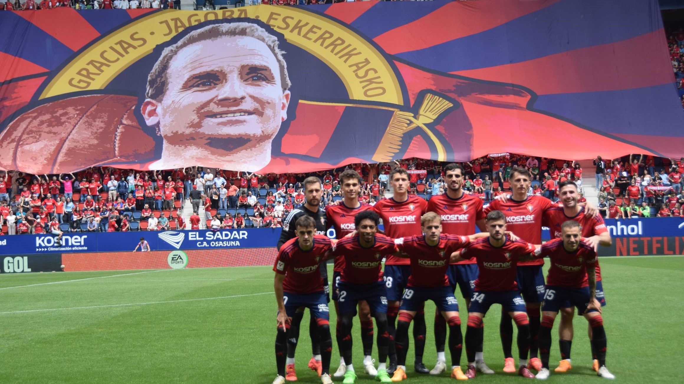 En esta jornada el fútbol ha pasado a ser algo anecdótico, algo que estaba allí para envolver las diferentes despedidas que se han ido viviendo campo a campo, y en esto tampoco ha sido ajeno el Sadar donde se vivió una de las más emotivas: la de Jagoba Arrasate.