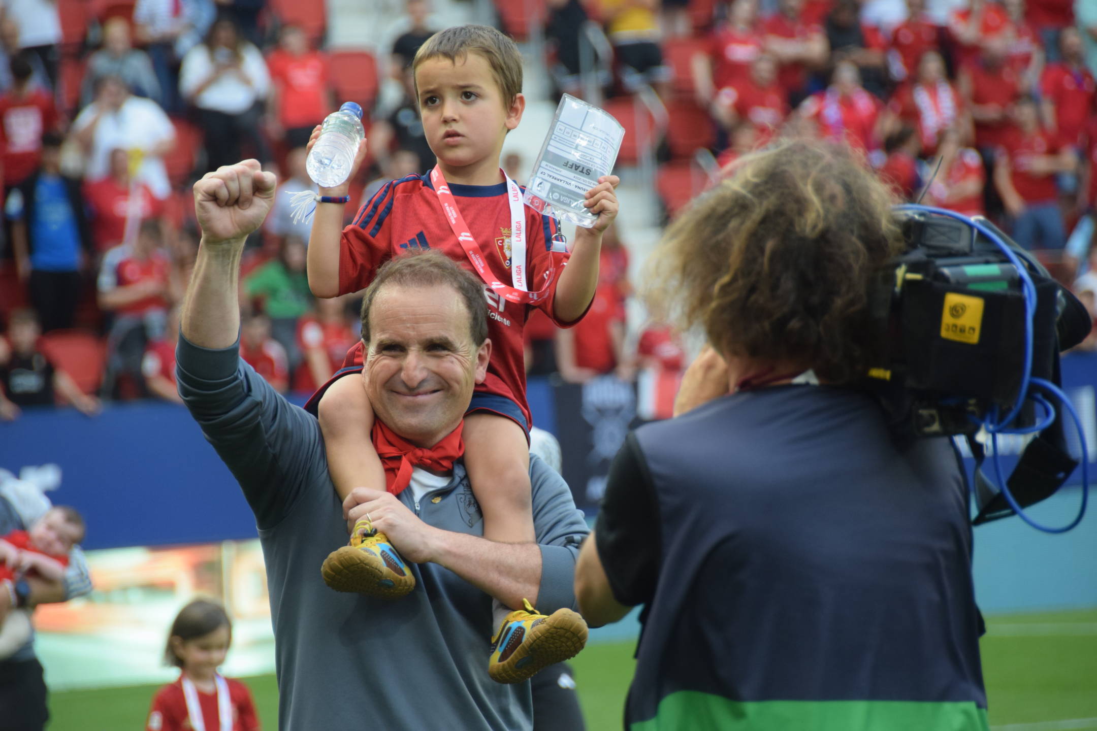 Con una vuelta de honor, en la que lo han acompañado sus dos pequeños, concluyó finalmente el precioso homenaje de a entrenador que en las filas rojillas nadie olvidará.