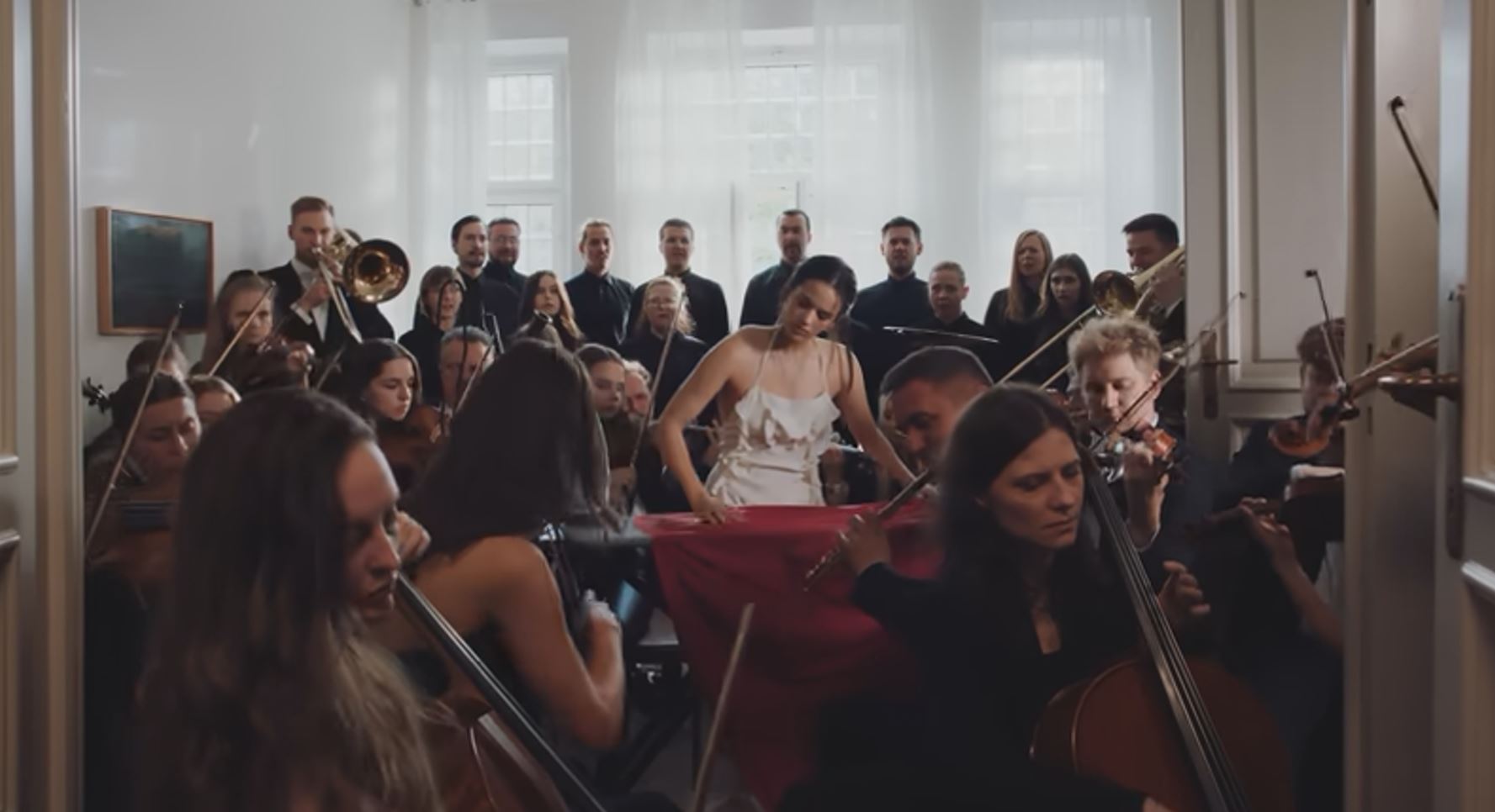 El video muestra poco después a la orquesta dentro de la cocina y acompañando a la cantante en tareas cotidianas: tomar un café, planchar, hacer la cama, lavar de rodillas la ropa en una bañera… Todas ellas rutinas domésticas que son también clichés. La música llega como un pensamiento, como ruido emocional dentro de ellas. Parte de belleza, parte de dolor.