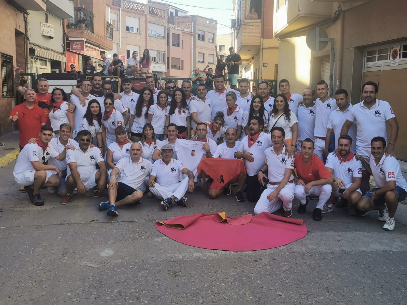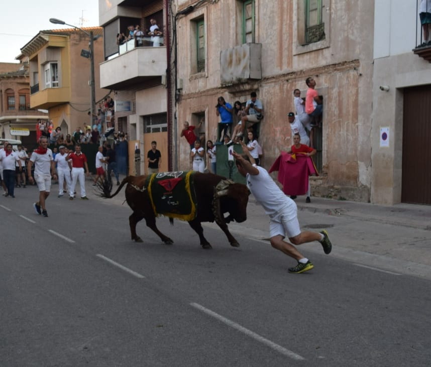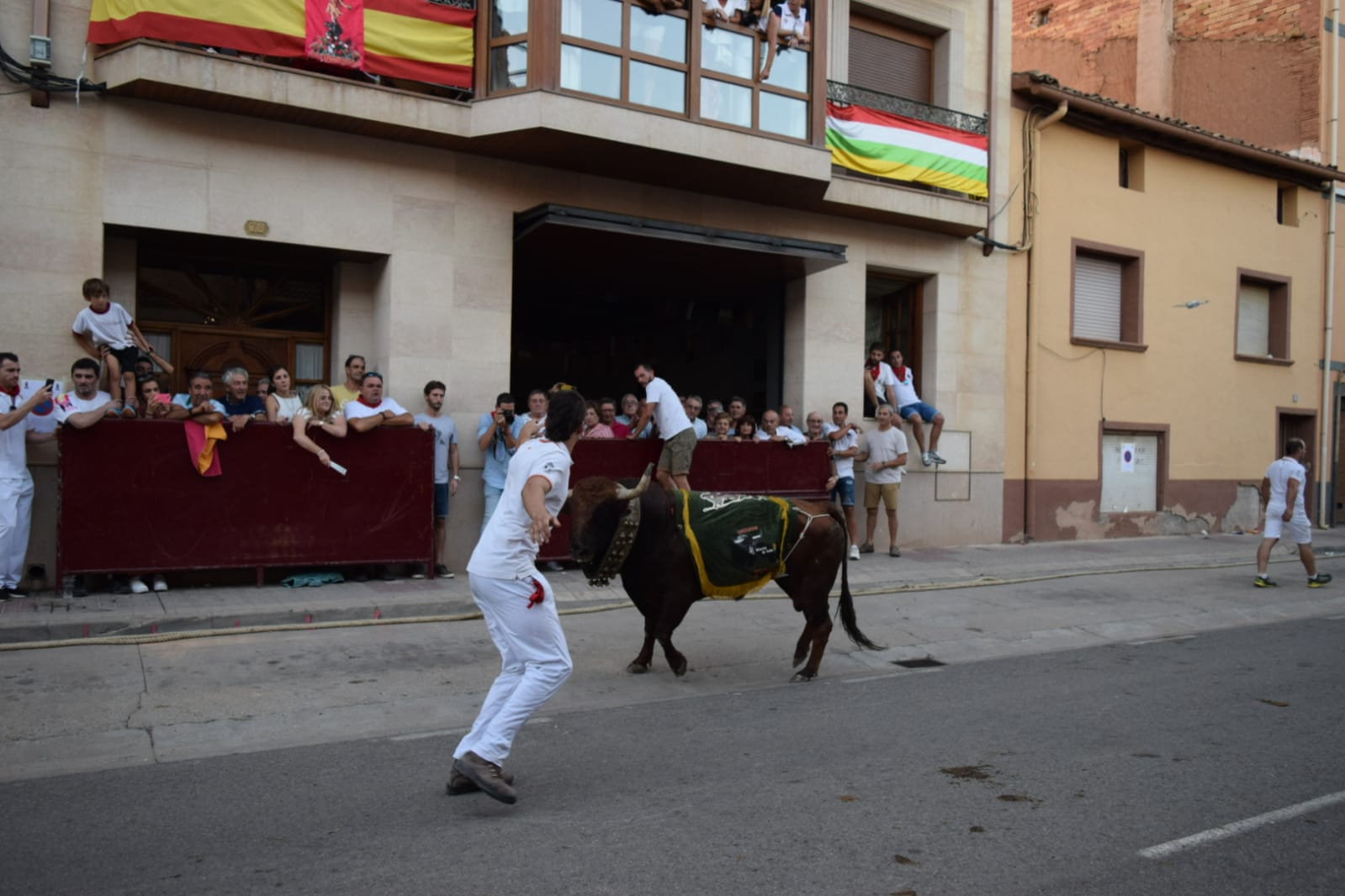 De nuevo, un grupo de valientes han vuelto a colocar el tradicional mantón a un imponente astado, bien presentado. que después ha paseado, adornado con él, por el recorrido del encierro.