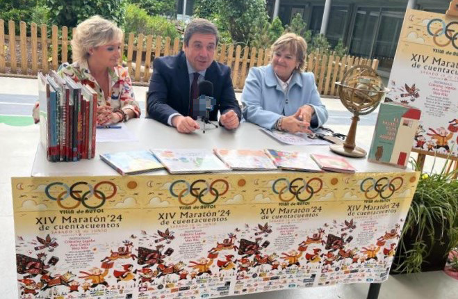 El consejero de Educación y Empleo, Alberto Galiana, la alcaldesa de Autol, Catalina Bastida, y la directora del Centro de Educación Obligatoria (CEO) Villa de Autol, Ana Isabel Jiménez, han presentado hoy, 27 de mayo, la XIV edición del Maratón de Cuentacuentos del centro, que este año se celebrará el 15 de junio y estará ambientando en la inauguración de los Juegos Olímpicos.