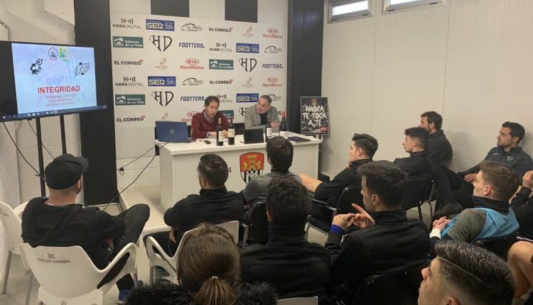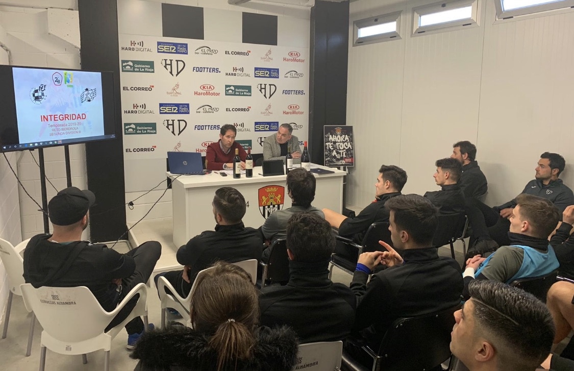 Los integrantes de las plantillas (jugadores, cuerpo técnico y directivos) de C.D. Calahorra y Haro Deportivo, ayer martes, y la U.D. Logroñés, hoy miércoles, han recibido información sobre normativa en apuestas deportivas, protección de las competiciones, seguridad o amaño de partidos.