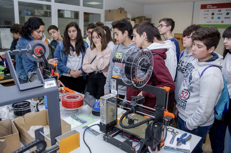 Estudiantes del Colegio Amor Misericordioso de Alfaro han visitado estq mañana el Área UR Maker de la Universidad de La Rioja, un espacio de trabajo colaborativo y aprendizaje activo con impresoras 3D ubicado en la Escuela Técnica de Ingeniería Industrial (ETSII) de la UR.