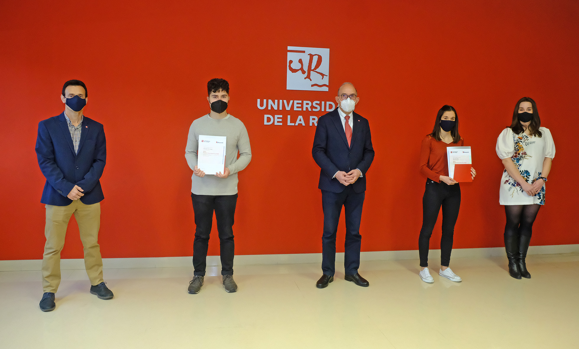 Juan Carlos Ayala, rector de la Universidad de La Rioja, y María Díez Arnaiz, responsable de Recursos Humanos de Bosonit, han entregado a Fernando Ortiz Caceo y Marta Elvira Rey las becas que les permite seguir, durante el curso 2020–2021, el Máster Universitario en Ciencia de Datos y Aprendizaje Automático de la Universidad de La Rioja.