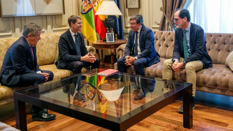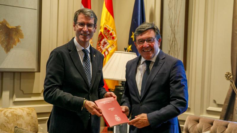 El presidente del Gobierno de La Rioja, Gonzalo Capellán, junto al director general de Servicios Jurídicos, Rafael Lorés, ha recibido hoy, día 28, al presidente del Consejo Consultivo de La Rioja, José Ignacio Pérez, que ha hecho entrega de la memoria anual de este órgano.