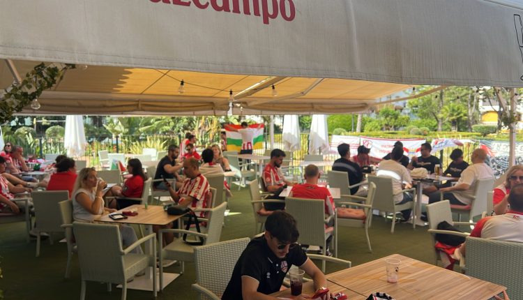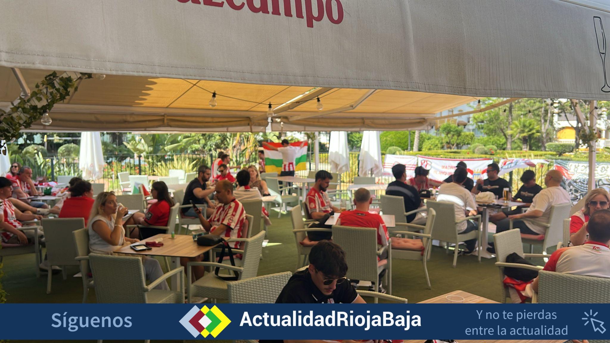 Los 51 de Marbella ya están preparados para salir en dirección al campo. Los 51 valientes que se han viajado hasta tierras andaluzas se preparan para salir en dirección al campo y animar a la UD Logroñés