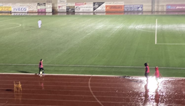 Con más agua que juego, Haro Deportivo y CD Calahorra disputaron el tercero de los 6 derbis riojanos que este año se vivirán en la Segunda B.