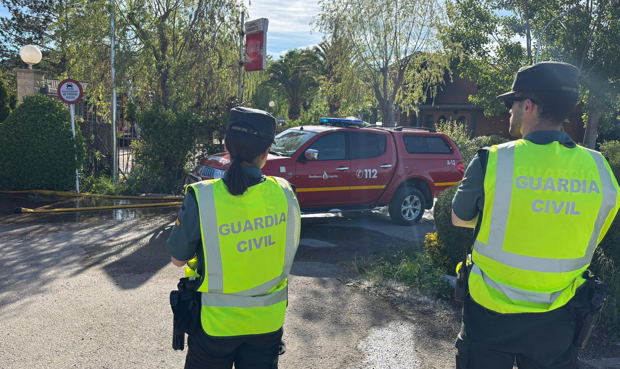 Al lugar han acudido tres camiones de bomberos y equipos de emergencias del Servicio Riojano de Salud. El incendio ya ha sido controlado, aunque las labores de refrigeración continúan para evitar rebrotes.