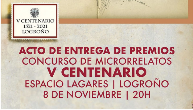 Julia Sáenz Ibáñez, José Luis Pérez Pastor y Rubén Navajas Bonafaux se han proclamado ganadores del concurso de microrrelatos «V Centenario». Los premios del certamen, organizado por la Federación de Asociaciones de Vecinos de Logroño y la Trapería de Klaus, son un lote de libros en cada categoría valorado en 200€ (editados por Trapería de Klaus, Ediciones del 4 de Agosto y el Instituto de Estudios Riojanos) y un diploma acreditativo.