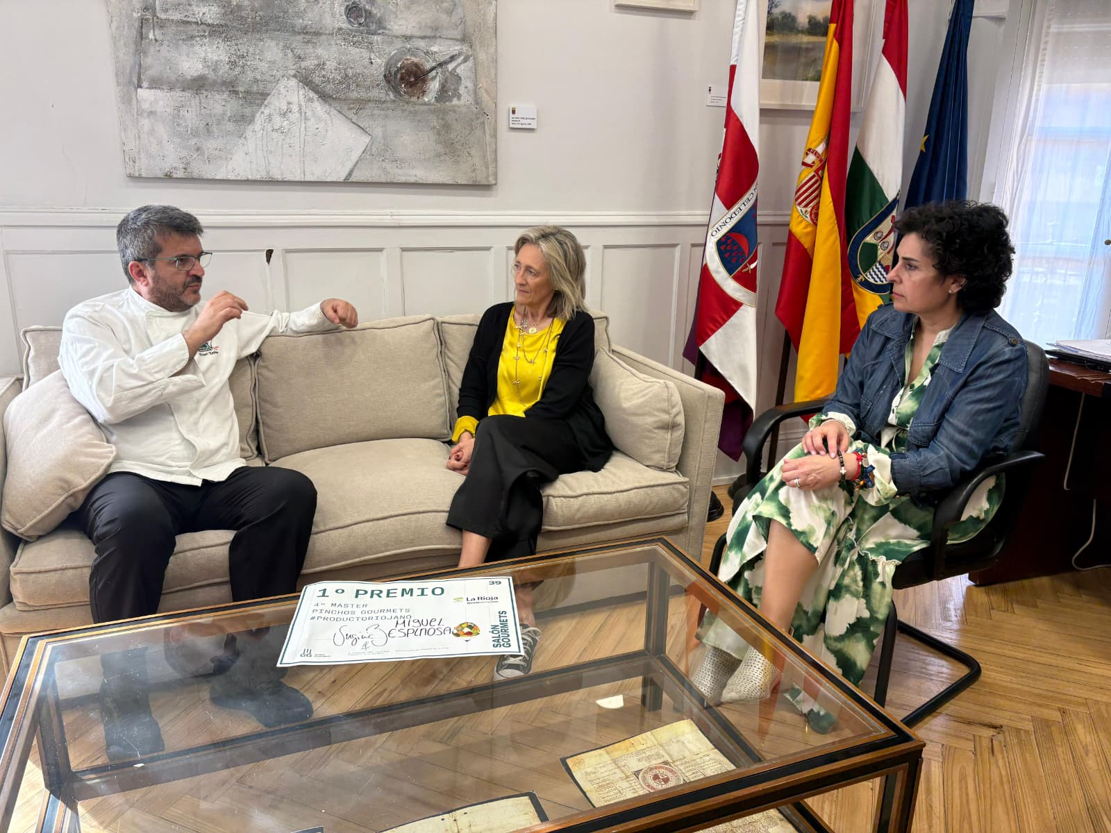La alcaldesa de Calahorra recibe al chef Miguel Espinosa tras ganar el Máster Nacional de Pinchos Gourmets ProductoRiojano