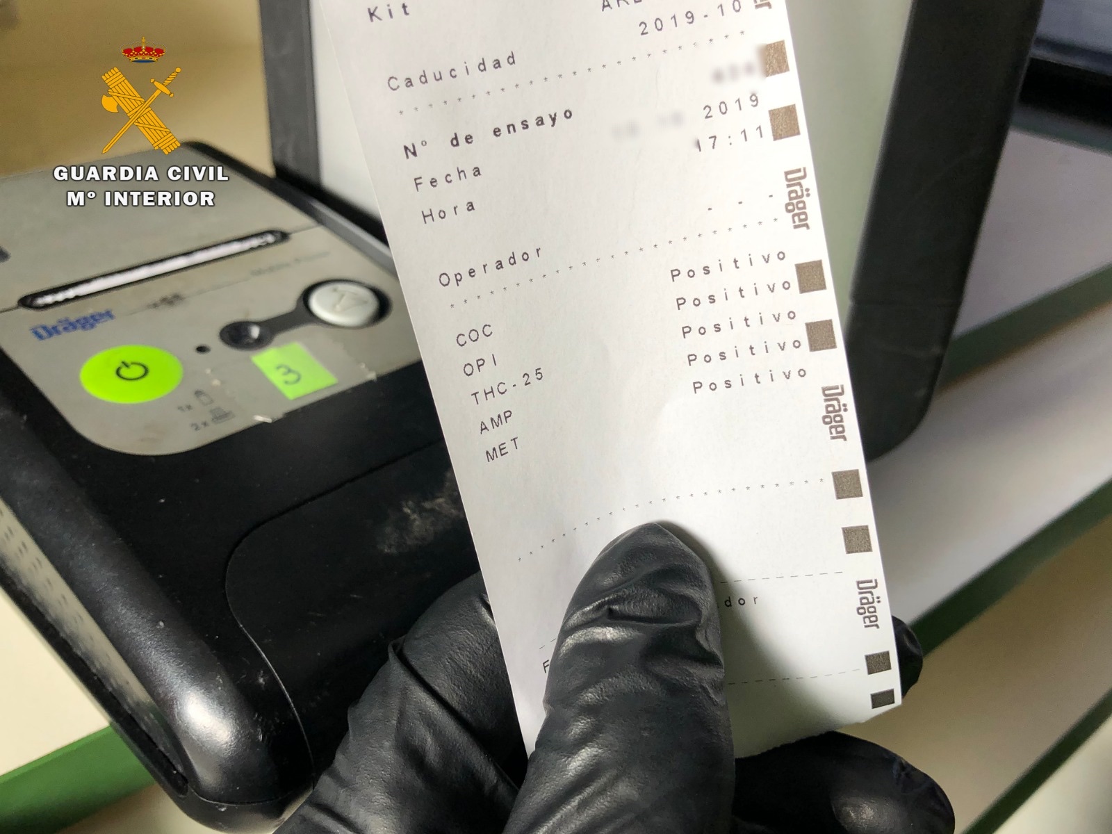 La Guardia Civil en La Rioja intercepta a un conductor que dio positivo en todas las drogas detectables por el narcotest.